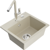 Zlewozmywak został wykonany z wysokiej jakości granitu. Stanowi eleganckie, a przede wszystkim praktyczne uzupełnienie każdej kuchni, niezależnie od jej stylu. Wysoka jakość oraz trwałość granitu zapewniają wieloletnie użytkowanie.