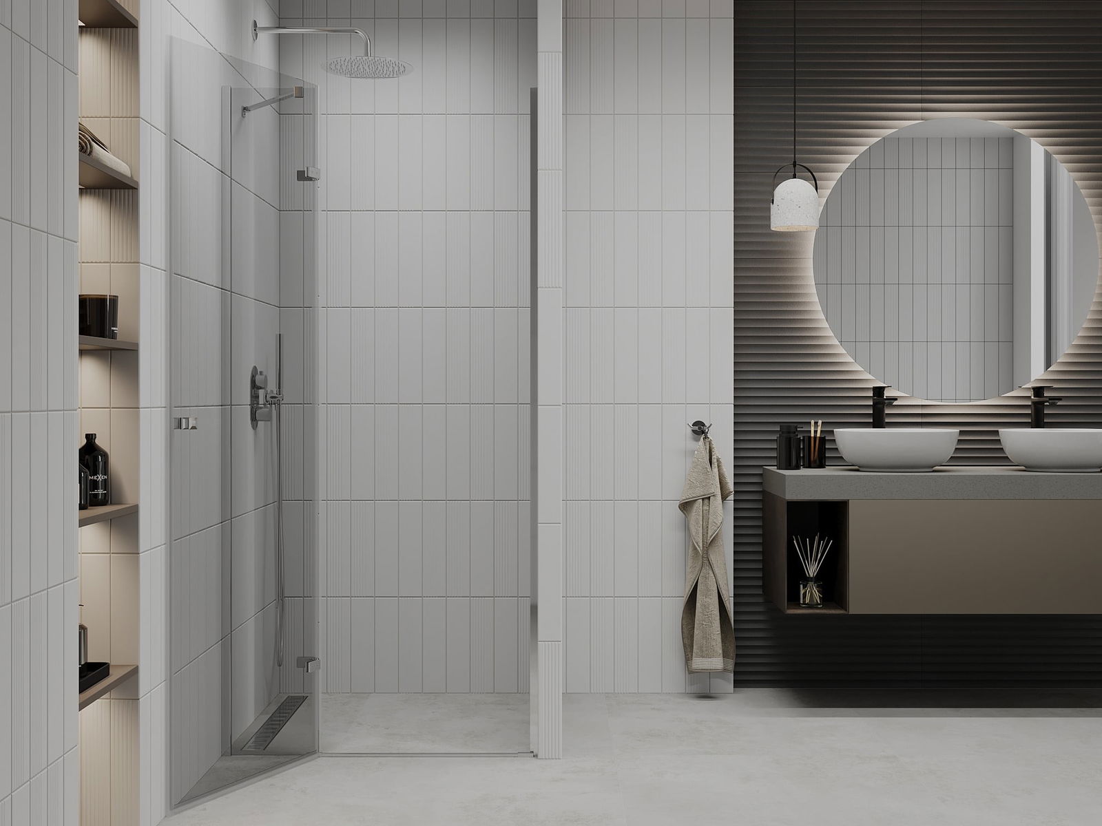 Ścianka prysznicowa z relingiem i półką zwiększa funkcjonalność strefy prysznica, umożliwiając wygodne przechowywanie kosmetyków oraz powieszenie ręczników, co szczególnie sprawdza się w mniejszych łazienkach. Wersja bez dodatków lepiej sprawdzi się u osób ceniących minimalizm i łatwość sprzątania.