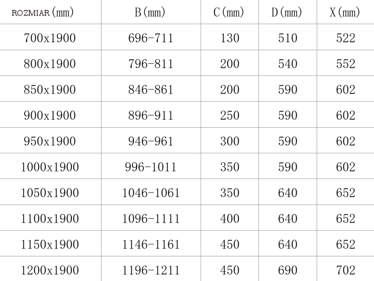 Informacje dotyczące regulacji naszych drzwi i kabin można znaleźć w tabelce z wymiarami, która znajduje się w zdjęciach poglądowych danego produktu.