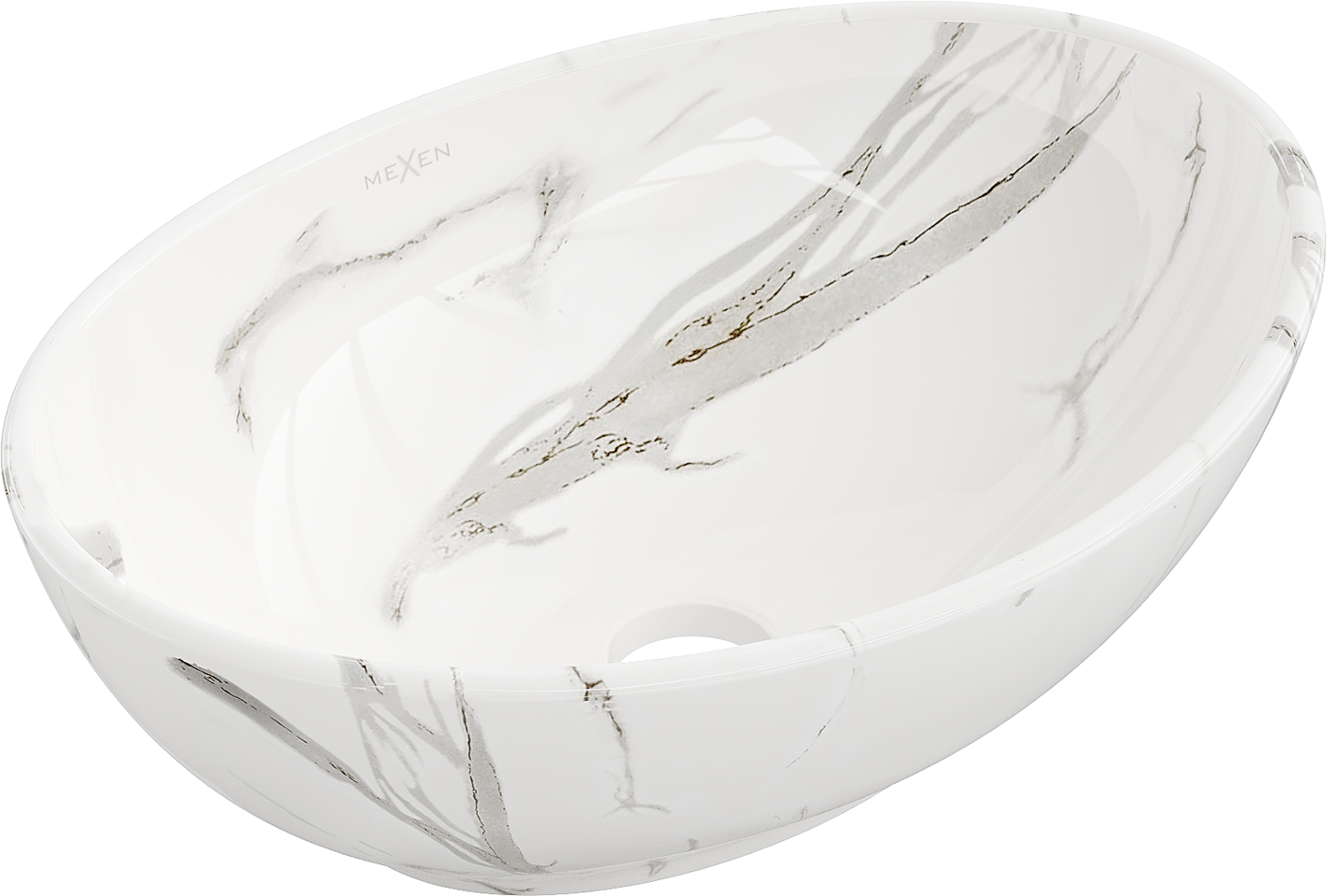 Mexen Elza to elegancka umywalka nablatowa o wymiarach 40,5 x 33 cm, wykonana z wysokiej jakości ceramiki sanitarnej w kolorze białego kamienia. Jej owalny kształt i połyskliwa powierzchnia dodają nowoczesnego charakteru każdej łazience. Dzięki głębokości 12,5 cm, produkt zapewnia komfort użytkowania, a brak otworów na baterie oraz przelew sprawia, że idealnie wpisuje się w minimalistyczne aranżacje. Dodatkowo, umywalka jest zabezpieczona powłoką ochronną, co ułatwia jej pielęgnację.