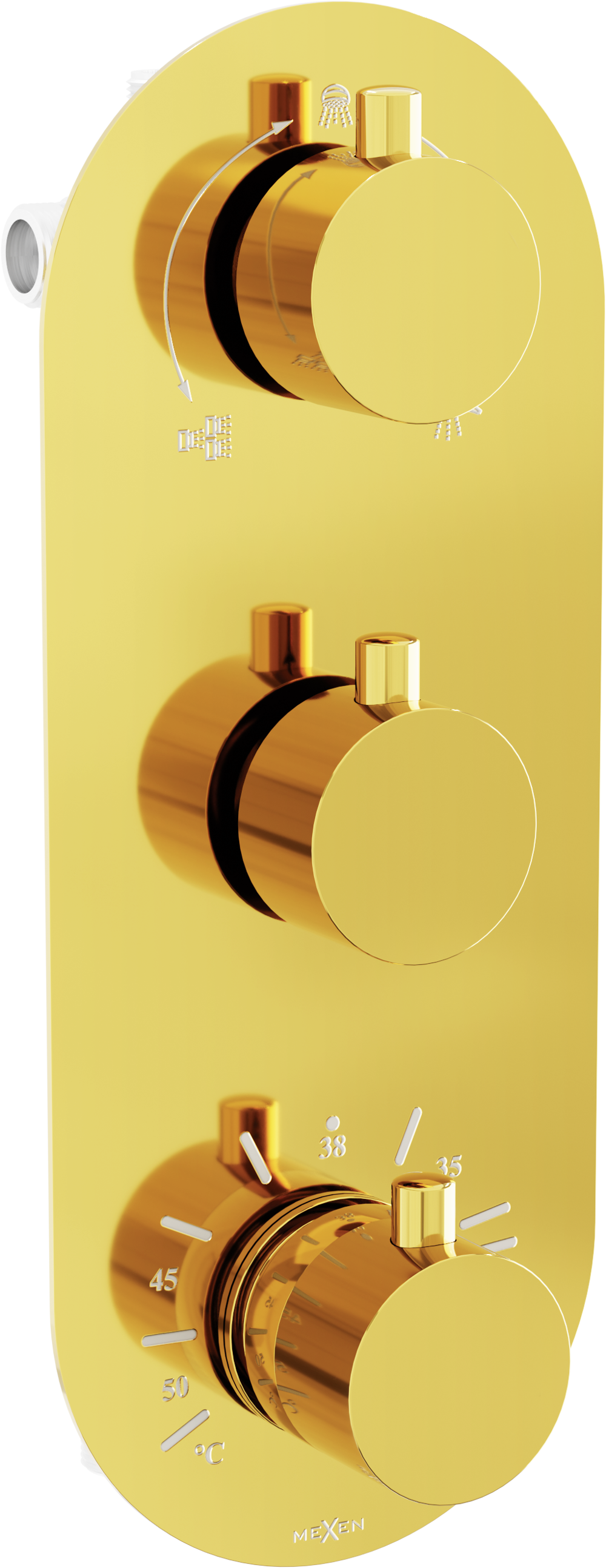 • Mexen Kai termostatyczna bateria wannowo-prysznicowa 3-wyjściowa. złota - 77603-50