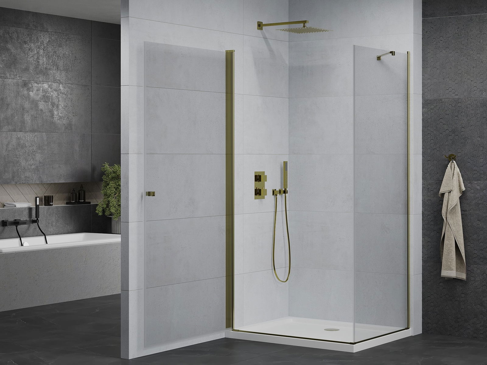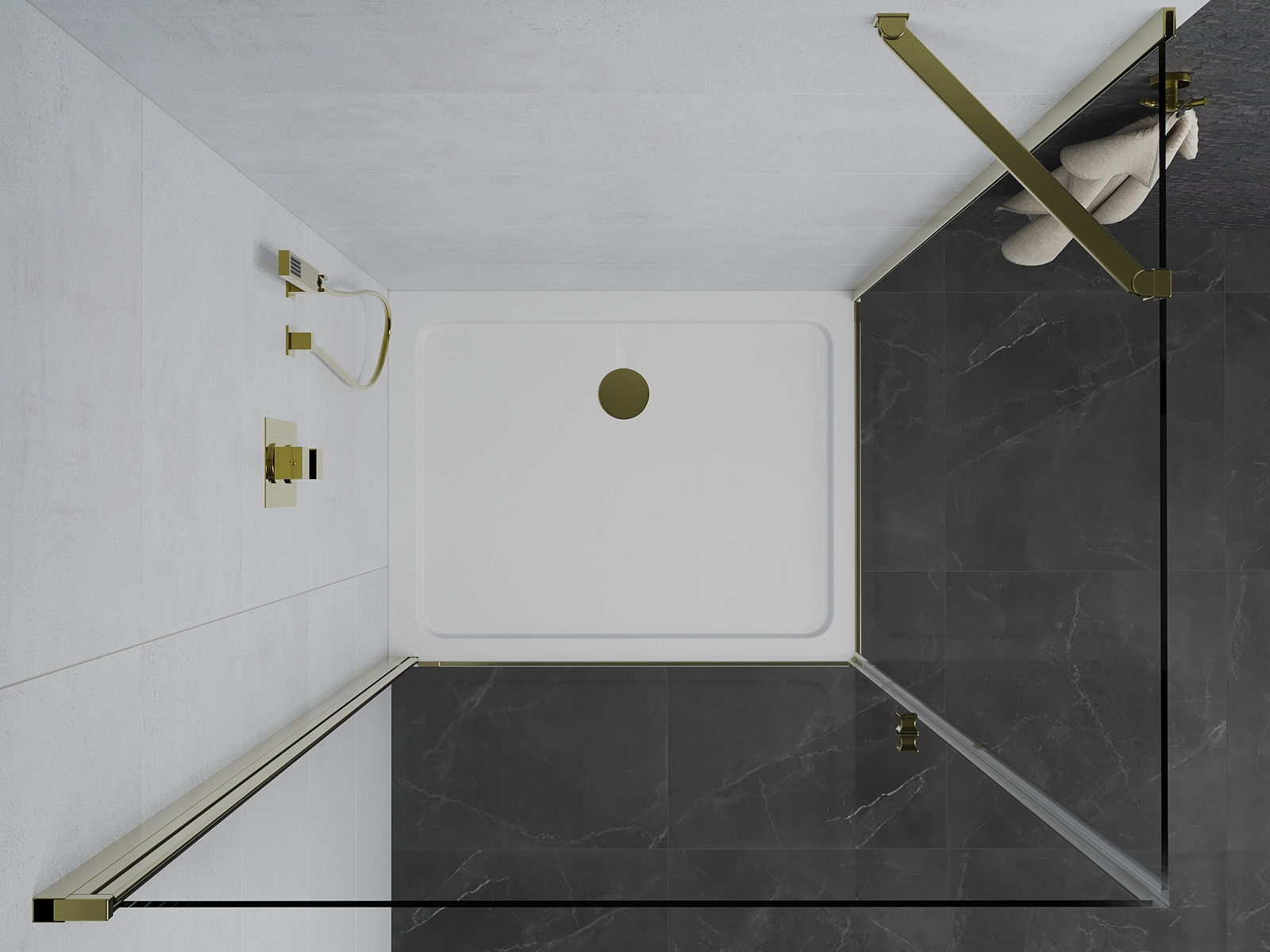 Poręczny i wygodny uchwyt został wykonany z trwałego i odpornego metalu. Modny kształt w połączeniu z wykończeniem dopasowanym do koloru profili nadaje całości nowoczesnego i stylowego wyglądu, podkreślając estetykę każdej łazienki.