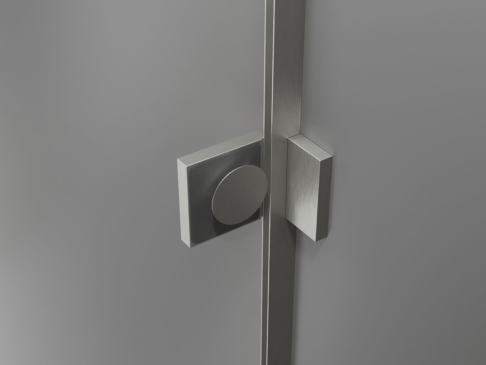 Poręczny i wygodny uchwyt został wykonany z trwałego i odpornego metalu. Modny kształt w połączeniu z wykończeniem dopasowanym do koloru profili nadaje całości nowoczesnego i stylowego wyglądu, podkreślając estetykę każdej łazienki.